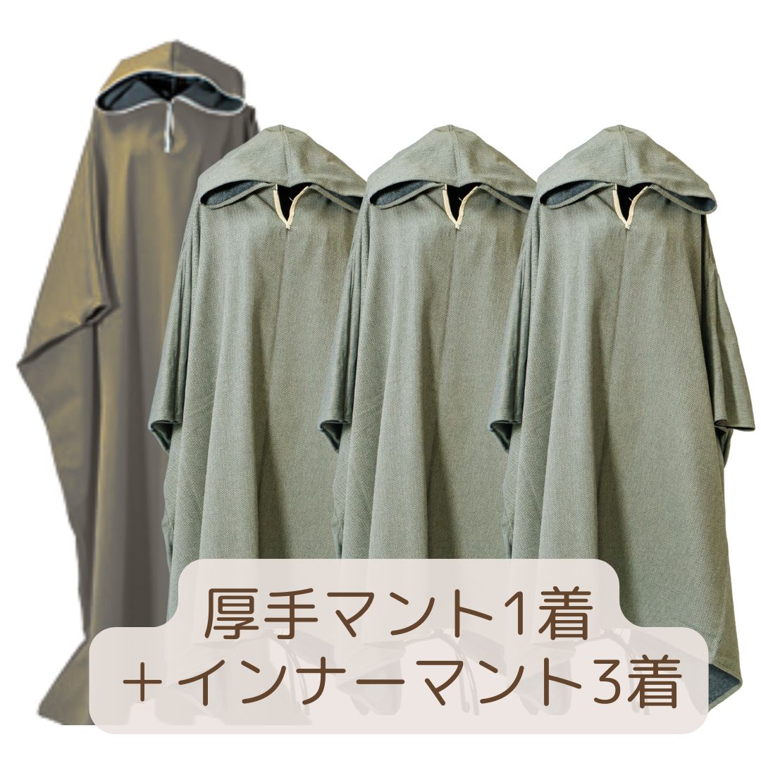 クッションカバー穴なし3枚、よもぎ蒸し用ガウン4着(裏起毛マントカーキ+インナーマント3着)、